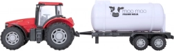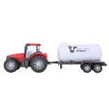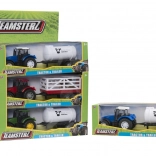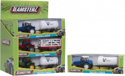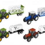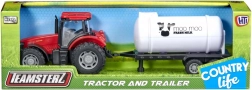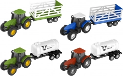 Kies een tractor in groen, blauw of rood en koppel de aanhanger naar wens – de universele kipper of de stijlvolle melktank (afhankelijk van beschikbaarheid).