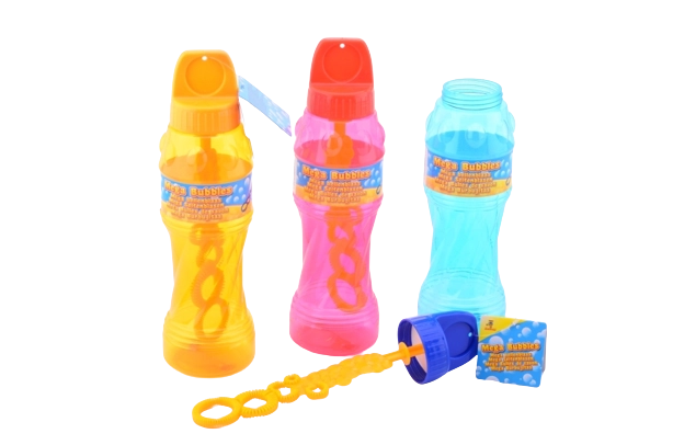 Mega bellenblaas in drie kleuren met een bellenvormer in de dop van het product.