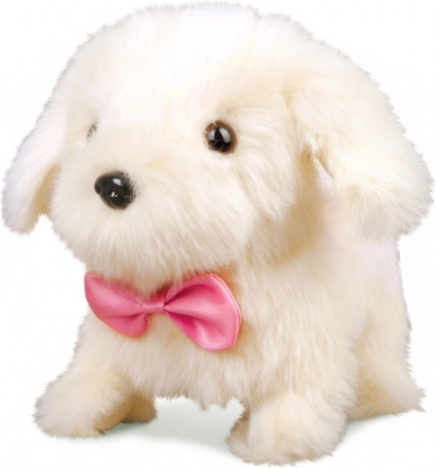Een puppy met een interactieve fles die reageert op het indrukken van de knop op de rug. Wanneer je de fles bij het neusje houdt, begint de puppy dankzij een magnetische sensor drinkgeluiden te maken.