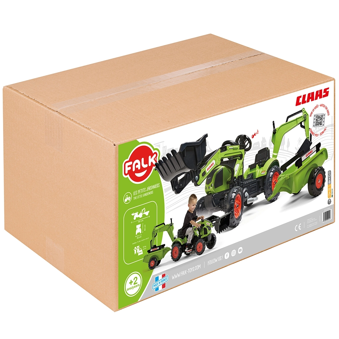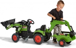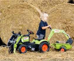 Maak een kleine tractorbestuurder blij met de CLAAS ARION traptractor met aanhanger, bak en frontlader. Realistische details, een claxon in het stuur en de officiële CLAAS-kleuren stimuleren de fantasie en zorgen voor uren speelplezier. De robuuste afwerking van hoogwaardige kunststof en het stabiele chassis zorgen voor veilig rijden vanaf 2 jaar.