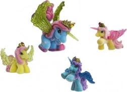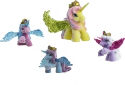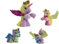 Elk paardje heeft vleugels met glans, een magische hoorn en een gouden kroon met een gekleurde “kristal” – ideaal voor sprookjesachtig speelplezier.