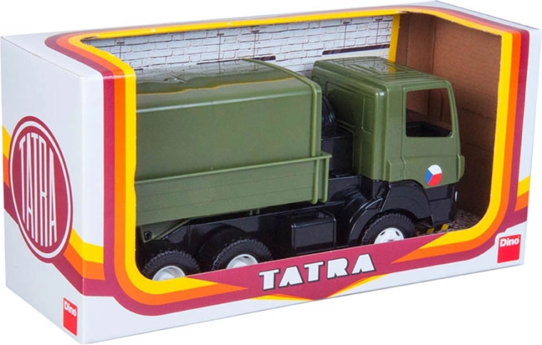 Tatra Phoenix in militaire uitvoering is uitgerust met een gesloten laadbak, die ook leeg kan zijn. Dankzij de kantelbare laadbak kunnen kinderen eenvoudig het laden en lossen van materiaal simuleren. Dit model is gemaakt van niet-schadelijke kunststoffen zonder ftalaten, wat veilig spelen garandeert. De Tatra is geschikt voor kinderen vanaf 1 jaar en wordt met trots geproduceerd door het Tsjechische bedrijf Dino Toys.