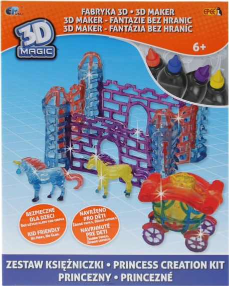 Met 3D MagiDeluxe maak je moeiteloos originele 3D-modellen – van kastelen tot koetsen en magische figuurtjes. Gebruik simpelweg de 3D Magic gel, kies een mal of sjabloon en laat je creatie uitharden onder UV-licht. Het resultaat is stevig, kleurrijk en klaar om mee te spelen of te presenteren.