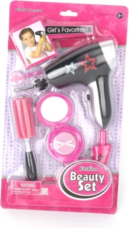 De set bevat een realistisch ogende föhn, een palet met “make-up”, een kammetje, nagellak en een lippenstift of een parfumflesje – alles in aantrekkelijke kleuren die uitnodigen tot creatief spel. Stimuleert sociale vaardigheden, zelfstandigheid en verbeeldingskracht.