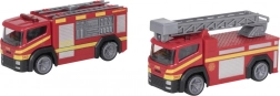 De set bevat twee brandweerwagens met draaiende ladders en gele accenten voor nog meer speelplezier.