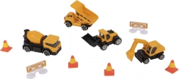 De combinatie van gele en zwarte plastic bouwvoertuigen, zoals een kiepwagen, mixer, graafmachine en lader, biedt kinderen de mogelijkheid om een echte bouwomgeving na te bootsen.
