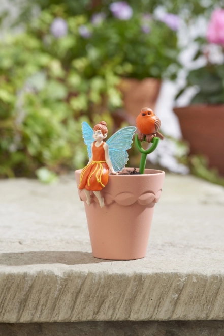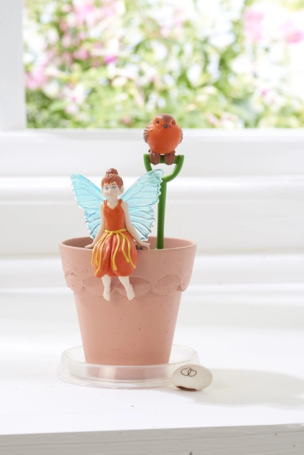De charmante fee met blauwe vleugels en haar vriendje, het vogeltje Robin, geven het bloempotje een sprookjesachtige uitstraling en laten elke kinderkamer stralen.