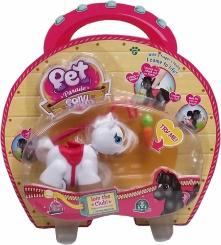 De pony’s uit de Pet Parade-serie zijn net echt. Kijk hoe jouw pony tot leven komt bij aanraking en schattig met zijn hoofd, staart en pootjes beweegt. Bevestig het lijntje aan zijn snuitje en ga samen op pad – zie hoe hij grappig met zijn pootjes stapt en met zijn ogen knippert.