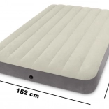 Tweepersoons opblaasbaar luchtbed INTEX met afmetingen 203 × 152 × 25 cm, ideaal voor thuis en kamperen. Het heeft een aangenaam velours oppervlak, een snelle Boston-ventiel voor eenvoudig op- en aflaten, en interne Dura-Beam Fiber-technologie voor betere lichaams ondersteuning. Inclusief reparatiepatch.