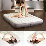 Het INTEX opblaasbare luchtbed biedt comfortabel en stabiel slaapcomfort voor twee personen. Dankzij het waterbestendige velours oppervlak voelt het prettig aan en glijdt het niet weg, terwijl duurzaam PVC zorgt voor een lange levensduur, zowel thuis als onderweg.