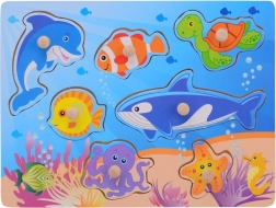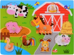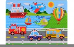 Ontdek de leuke en leerzame houten puzzel met knop voor de allerkleinsten. Drie thema’s – in het water, op de boerderij en verkeer – stimuleren de fijne motoriek, logisch denken en het herkennen van vormen. Elk puzzelstuk heeft een praktische knop voor eenvoudig vasthouden en de puzzel met een afmeting van 30 × 22 cm is perfect voor kleine kinderhandjes.