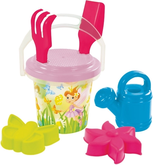 Deze zandset bezorgt kleine bouwers en liefhebbers van zandspel veel plezier. Drie speelse motieven – feeën, dinosaurussen en visjes – stimuleren de fantasie en het creëren van eigen verhaaltjes, terwijl de hoogwaardige kunststof zorgt voor een lange levensduur en prettig gebruik. In de verpakking zit alles wat kinderen nodig hebben om te harken, graven, zeven en zand water te geven.