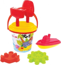De set is in de EU vervaardigd uit stevig, veilig plastic dat spelen in water en zand moeiteloos doorstaat. Het lichte ontwerp en het handvat aan de emmer maken meenemen makkelijk, terwijl de verschillende kindermotieven (feeën, dinosaurussen, piraten, prinsessen, visjes) elke kleine zandkasteelbouwer blij maken.