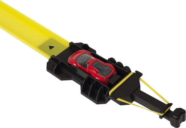 De krachtige lanceerder stuurt het autootje met bliksemsnelheid over de gele baan. Eenvoudige bediening stimuleert herhaald spelen en wedstrijdjes.