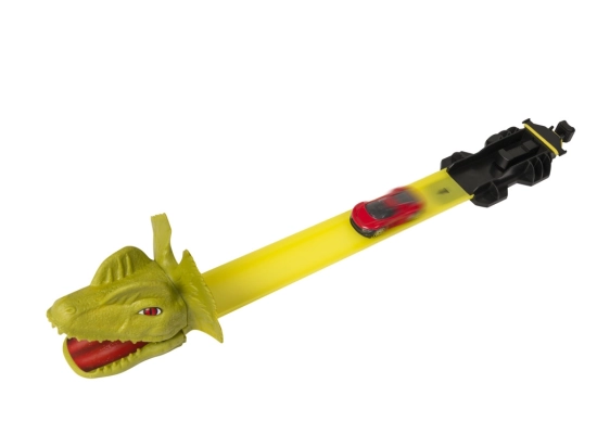 Ga op een adrenalinerit! De stijlvolle launcher schiet het autootje over de gele baan recht langs de dreigende dinosaurus. Dankzij de eenvoudige bediening is het spel meteen leuk en kunnen kinderen gemakkelijk testen wie de hindernis het snelst passeert.