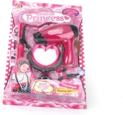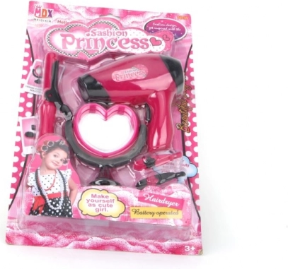 De lichte föhn van kunststof ligt goed in kinderlijke handen en prikkelt de fantasie bij het stylen van kapsels voor poppen en vriendjes.