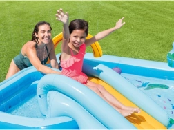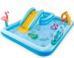 Maak van je tuin een speelse waterwereld met het INTEX speelcentrum. De brede glijbaan met zachte ondergrond zorgt voor een zachte en veilige landing, terwijl de ondiepe peuterzone en het grotere bad verfrissing bieden op warme dagen. De geïntegreerde fontein met instelbare waterdoorstroming geeft het spel een extra dimensie.