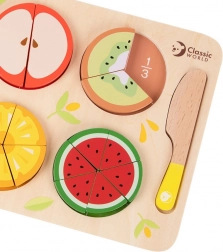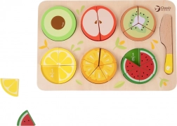 De set houten fruit om te snijden is ideaal voor jonge kinderen die het leuk vinden om een chef te spelen. Deze educatieve set bevat 23 verschillende elementen, inclusief een plank, mesje en gesneden fruit, wat eindeloze mogelijkheden biedt voor creatieve spelletjes en imaginaire scenario's.
