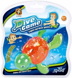 De lichtgevende duikende schildpad DIVE GAME maakt van elk badmoment een leuke uitdaging. Gooi hem in het water en zie hoe hij oplicht – het lichteffect nodigt kinderen uit om te bewegen, te duiken en onder water speelgoed te zoeken. Een geweldige keuze voor zomerse dagen bij het zwembad en speelse badmomenten thuis.
