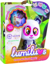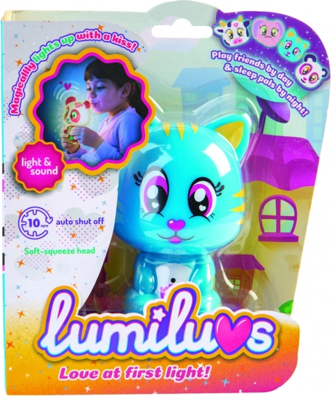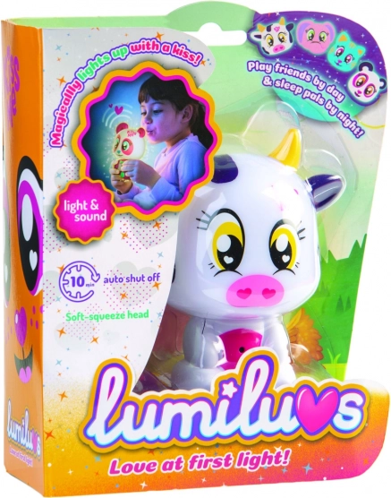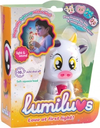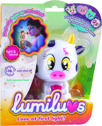 Het Lumiluvs diertje licht op en babbelt wanneer je op het buikje en het mondje blaast.