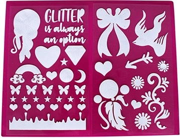 Ontdek de magie van het Glitterific sprankelstudio, waarmee je prachtige en stralende tatoeages en decoraties kunt maken. Met de speciale pen en stencils kun je verschillende vormen creëren en glitters met maximale precisie aanbrengen.