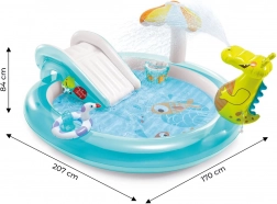 Breng vreugde naar uw kinderen met een zomerse dag vol water en plezier met dit opblaasbare kinderzwembad van het merk INTEX. Het is uitgerust met een glijbaan, een speelring en een watersproeifontein in de vorm van een krokodil, wat eindeloos plezier garandeert bij het spelen in het water.