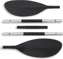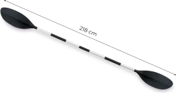 Kajakpeddel met een lengte van 2,18 m. Aluminium steel met twee kunststof peddelbladen. 3 lengtestanden.