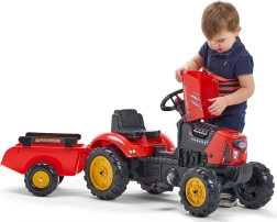 De robuuste kindertraptractor is gemaakt van hoogwaardige en duurzame kunststof en ontworpen voor dagelijks speelplezier. Dankzij de kettingaandrijving op de achteras en de zwenkende vooras is hij eenvoudig te bedienen en stimuleert hij de ontwikkeling van motoriek en evenwicht. De te openen motorkap met motorimitatie voegt realistische details toe waar kinderen dol op zijn.