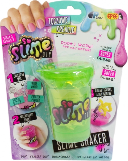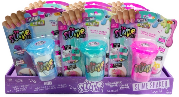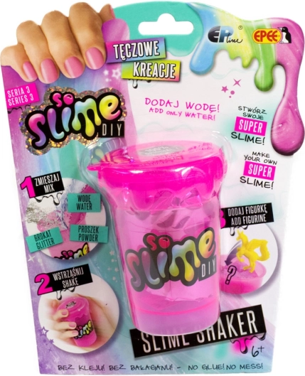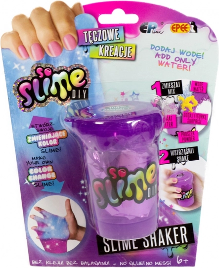 - Voeg water toe, schud en na vijf minuten is je slijm klaar voor eindeloos speelplezier.