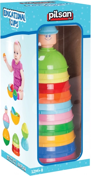 Deze bouwset bevat 10 gekleurde bekers, die gestapeld kunnen worden tot een piramide. Het is een geweldige hulpmiddel voor kinderen die hun hand-oogcoördinatie, kleurherkenning en probleemoplossend vermogen willen verbeteren. De hoogte van de hele piramide is 28 cm, een ideale maat voor kleine kinderen.