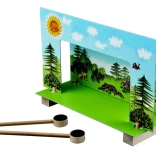 - Dubbelzijdige decors van hard karton voor verschillende scènes