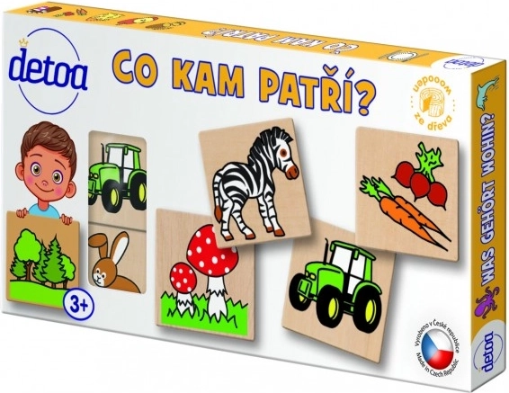 Detoa houten puzzel Waar hoort wat thuis is een didactisch spel dat kinderen helpt voorwerpen te herkennen en ze aan het juiste plaatje te koppelen. Dit spel is ideaal om het logisch denken en geheugen te verbeteren bij kinderen vanaf 3 jaar.
