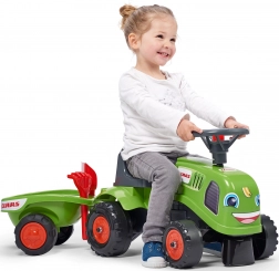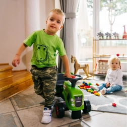 De schattige groene tractor – een loopvoertuig voor de allerkleinsten – is gemaakt van hoogwaardige kunststof en is stabiel en veilig voor de eerste rijpogingen. Dankzij de compacte afmetingen en het lage gewicht is hij eenvoudig te bedienen, terwijl de draaibare vooras en het stuur met claxon zorgen voor extra speelplezier.
