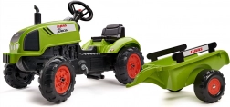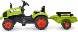 De kindertraptractor CLAAS met afneembare aanhanger van het merk Falk maakt elke kleine boer blij. Hij biedt een stevige kunststof constructie, kettingaandrijving op de achteras, een claxon op het stuur en een te openen motorkap met motorimitatie. Geschikt voor kinderen vanaf 2 jaar en met een draagvermogen tot 30 kg.
