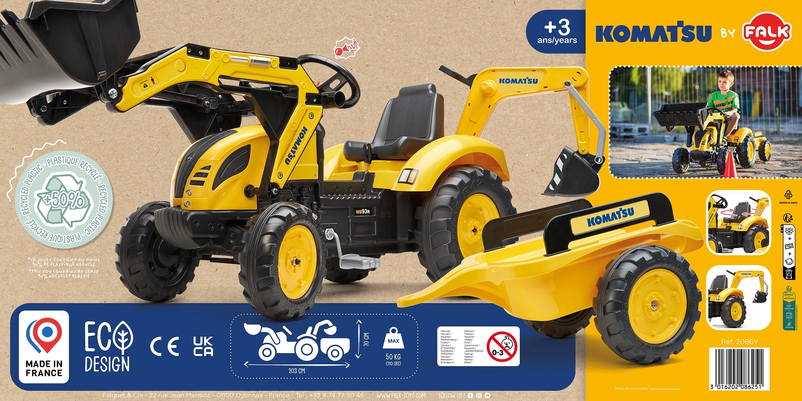 De traptractor FALK KOMATSU is een hit voor alle kleine liefhebbers van bouwmachines. Dankzij de authentieke gele kleur en functionele elementen bootsen kinderen eenvoudig werkzaamheden op de bouw na – scheppen, overladen en materiaal vervoeren in de aanhanger. Ergonomische bediening en de soepele kettingaandrijving stimuleren actief bewegen en coördinatie.