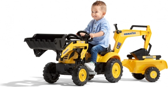 Traptractor Komatsu met voor- en achterlader en kiepwagen