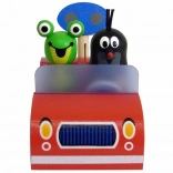 Schattig houten autootje met de geliefde figuurtjes MOL en Muisje, ideaal voor kleine chauffeurs en sprookjesliefhebbers. De figuurtjes en de sleutel zijn gemakkelijk uitneembaar en uitwisselbaar, wat creatief spel, fijne motoriek en de verbeelding van kinderen stimuleert. De veilige uitvoering voldoet aan de EU-veiligheidseisen voor speelgoed en is ideaal voor kinderen vanaf 3 jaar.