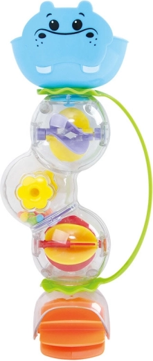 Uren speelplezier. Giet er water in en kijk hoe het door de gekleurde draaiende wieltjes stroomt.