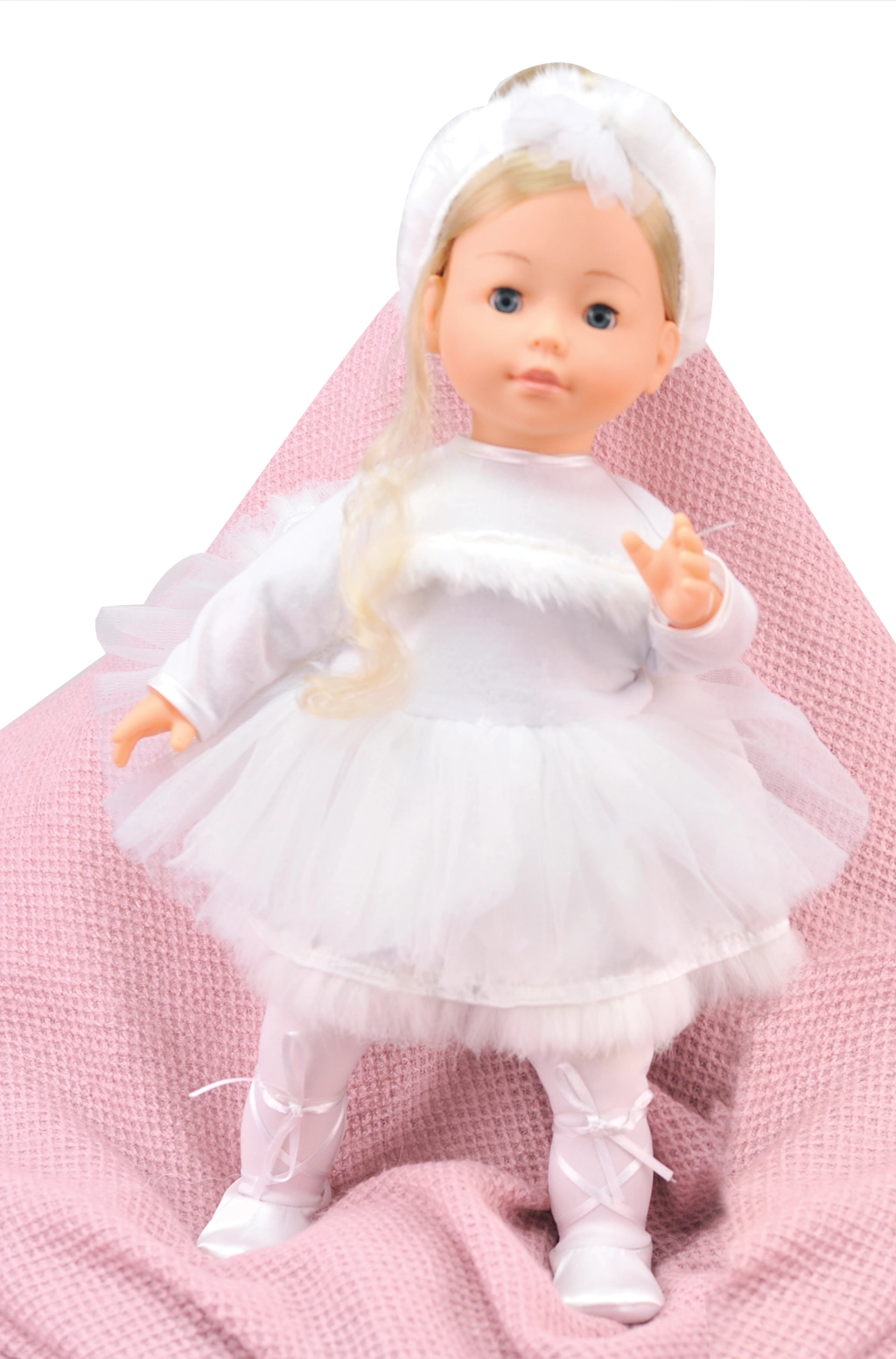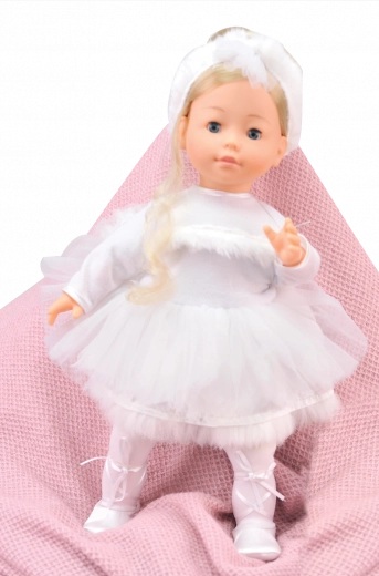 Bambolina Molly ballerina 40 cm met knipperende ogen en 3 liedjes. Vinyl uitvoering, prachtige kleertjes, LR44-batterijen inbegrepen. Geschikt vanaf 3 jaar.