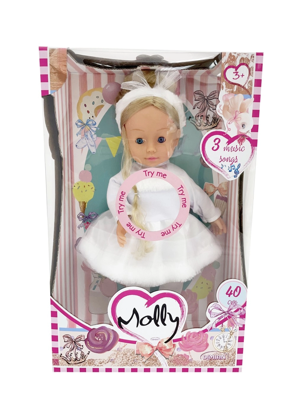 De schattige pop Bambolina Molly ballerina maakt elke kleine dansliefhebber blij. Ze heeft knipperende ogen, lang haar en draagt prachtige balletkleertjes. Ze kan 3 liedjes afspelen en dankzij de 40 cm ligt ze ook bij kleinere kinderen prettig in de hand. Geschikt vanaf 3 jaar, batterijen LR44 zijn inbegrepen.