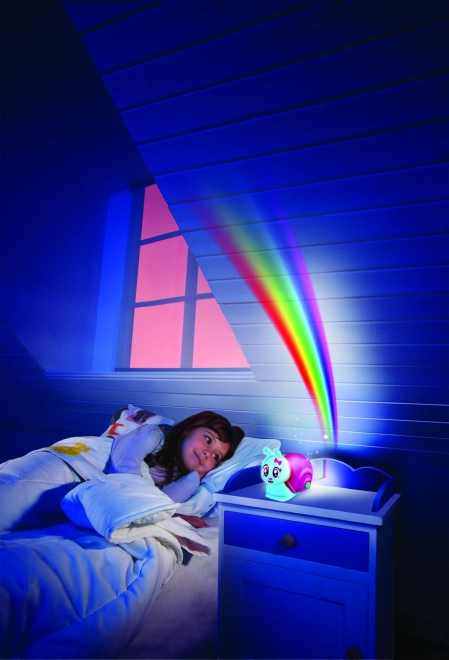 Druk op de knop op het slakkenhuis en de slak projecteert een prachtige regenboog op de muur en het plafond. Ideaal om een rustgevende nachtsfeer te creëren.
