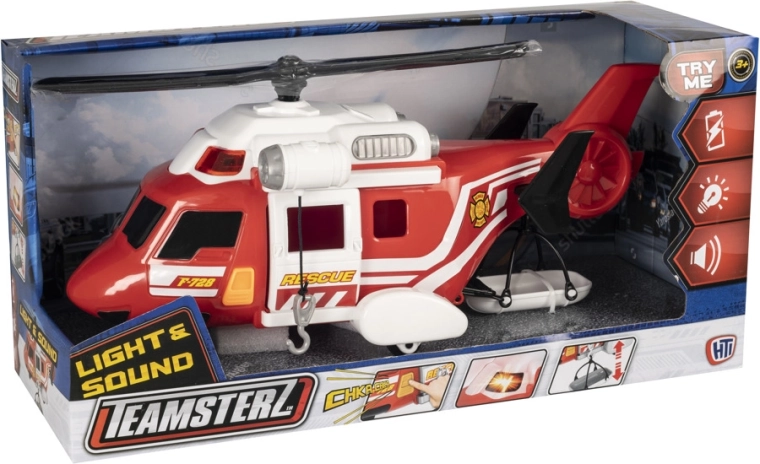 De Teamsterz brandweerhelikopter is het ideale speelgoed voor kleine helden. Dankzij de licht- en geluidseffecten komen reddingsacties tot leven en kunnen kinderen zich makkelijk echte situaties voorstellen. De te openen zijdeur en de brancard vergroten de speelmogelijkheden en stimuleren creatief spel.
