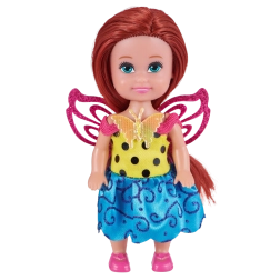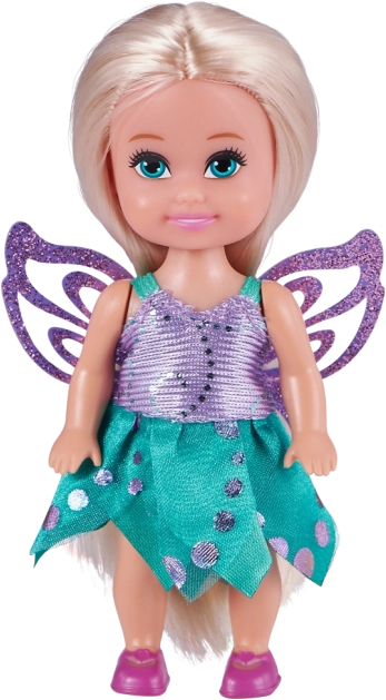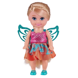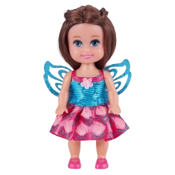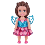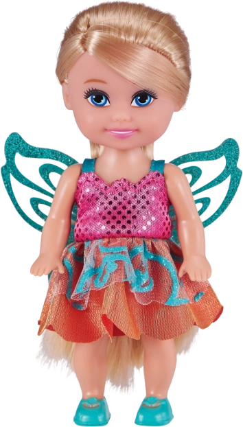 Voorzien van kleurrijke en glinsterende vleugels die van de pop een echte fee maken.