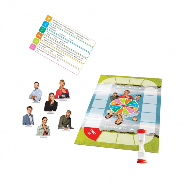 Een leuk familiespel geïnspireerd op de serie SLUNEČNÁ test je kennis van de populaire FTV Prima-show. 5 vraagcategorieën + speciale categorie Uitdaging, roulette, voortgang op het bord en spanning tot aan de finish. Spel voor 2–6 spelers, geschikt vanaf 8 jaar.