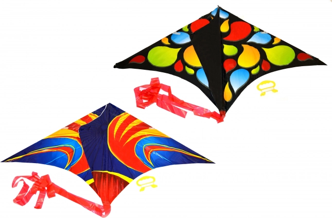 Vlieger met afmetingen 61 x 114 cm is een leuk speeltje voor kinderen en volwassenen, verkrijgbaar in twee kleuren: zwart en blauw.