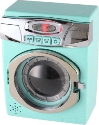 Speelgoed wasmachine in een helder turquoise kleur met licht en geluidseffecten is de ideale aanvulling voor kleine fans van het simuleren van huishoudelijke taken.