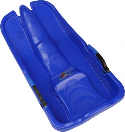 Kinderbob TURBOJET in blauw voor winterplezier. Vanaf 3 jaar, draagkracht 50 kg. Gecertificeerd door het Tsjechische staatskeuringsinstituut voor veilig rijden.