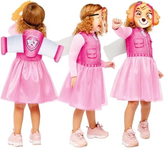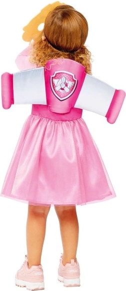 Roze overall met glanzend rokje, vest-top, puppy-embleem en bevestigde vleugeltjes voor de herkenbare look van de populaire heldin.