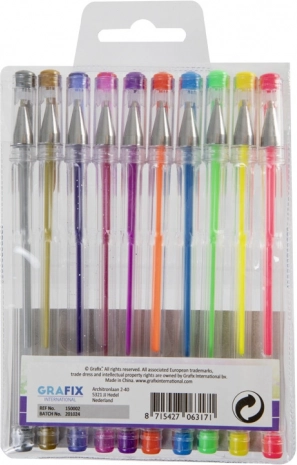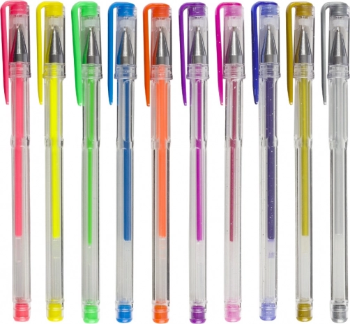 Geniet van schrijven en tekenen met deze unieke set gelpennen die een verscheidenheid aan kleurtinten biedt voor elke gelegenheid. De set bevat: