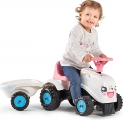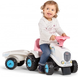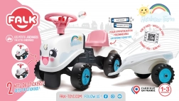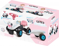 De traptractor Falk Rainbow in witte uitvoering met afneembare aanhanger is de droom van elke kleine boer. Hij is zorgvuldig vervaardigd met oog voor elk detail en is ideaal voor kinderen vanaf 12 maanden. Het voertuig heeft kunststof wielen en een constructie van hoogwaardige materialen.